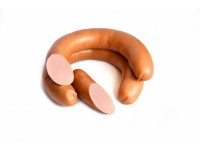 мясо механической обвалки куриное, вода питьевая, жир-сырец свиной, эмульсия из свиной шкурки (вода питьевая, шкурка свиная, комплексные пищевые добавки (вода питьевая подготовленная, регуляторы кислотности молочная кислота, лимонная кислота, орто-фосфорная кислота), (соль йодированная, лактоза, краситель кармин)), комплексные пищевые добавки (стабилизатор пирофосфат натрия, пищевая соль, загуститель гуаровая камедь, специи (чеснок), загустители каррагинан и его натриевая, калиевая, аммонийная соли, включая фурцеллеран, карбоксиметилцеллюлоза, антиокислитель изоаскорбиновая кислота, усилитель вкуса и аромата глутамат натрия 1-замещенный, экстракты (перец, паприка, тмин, кориандр, лук)), (соль йодированная, агент антислеживающий ферроцианид калия, фиксатор окраски нитрит натрия), соль поваренная пищевая йодированная, комплексные пищевые добавки (консерванты ацетат натрия, диацетат натрия, хлорид натрия), (эмульгаторы эфиры глицерина и молочной и жирных кислот, эфиры глицерина и лимонной и жирных кислот, сироп глюкозы (из кукурузного крахмала)), (соль йодированная, лактоза, краситель кармин).